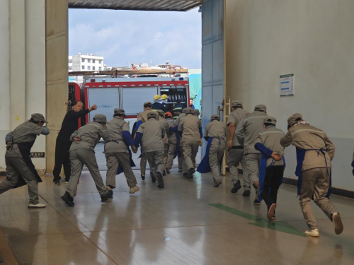 未雨绸缪,方能行稳致远。生产开始的前十分钟,麒麟复烤厂生产班组定时召开班前会,每天10分钟的安全警示,让工人们绷紧了心中的“安全弦”,从而准确、安全、高效地完成生产任务。此外,麒麟复烤厂专设厂内消防队,定期开展消防安全检查;车间内设置吸烟专区,加强火源管理,严格控制明火和高温物体的使用。同时,麒麟复烤厂还定期开展消防安全应急演练,如粉尘爆炸疏散逃生、仓库火灾事故应急演练、电梯应急事故处理等应急演练活动,切实增强员工的消防意识和应急应变能力。