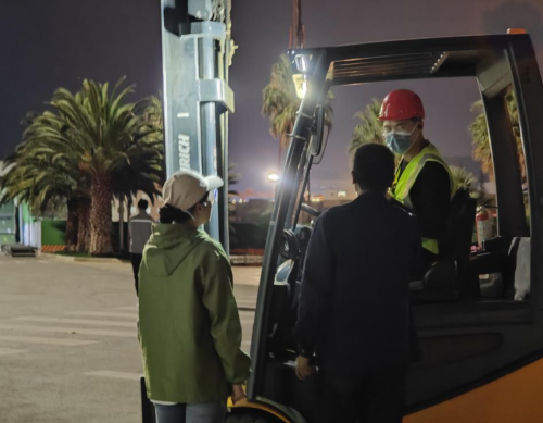薪火相传的责任感点亮了每一个值班室的夜晚。 “滴滴滴”晚上七点叉车和牵引车已经开始工作,为明天的分选现场提供原材料。此时叉抱车前站着师徒两人,师傅对叉车师傅说到:“夜间视线不好,在开叉抱车时一定要慢慢来,时刻关注路上行人,注意安全”,徒弟在一旁边看边听边学,一颗“安全”种子在声声叮嘱里渐渐生根发芽。沿着厂区重点区域,值班人员逐一排查安全隐患,在确保一切安全平稳运行后,才回到值班室等待夜间作业结束。