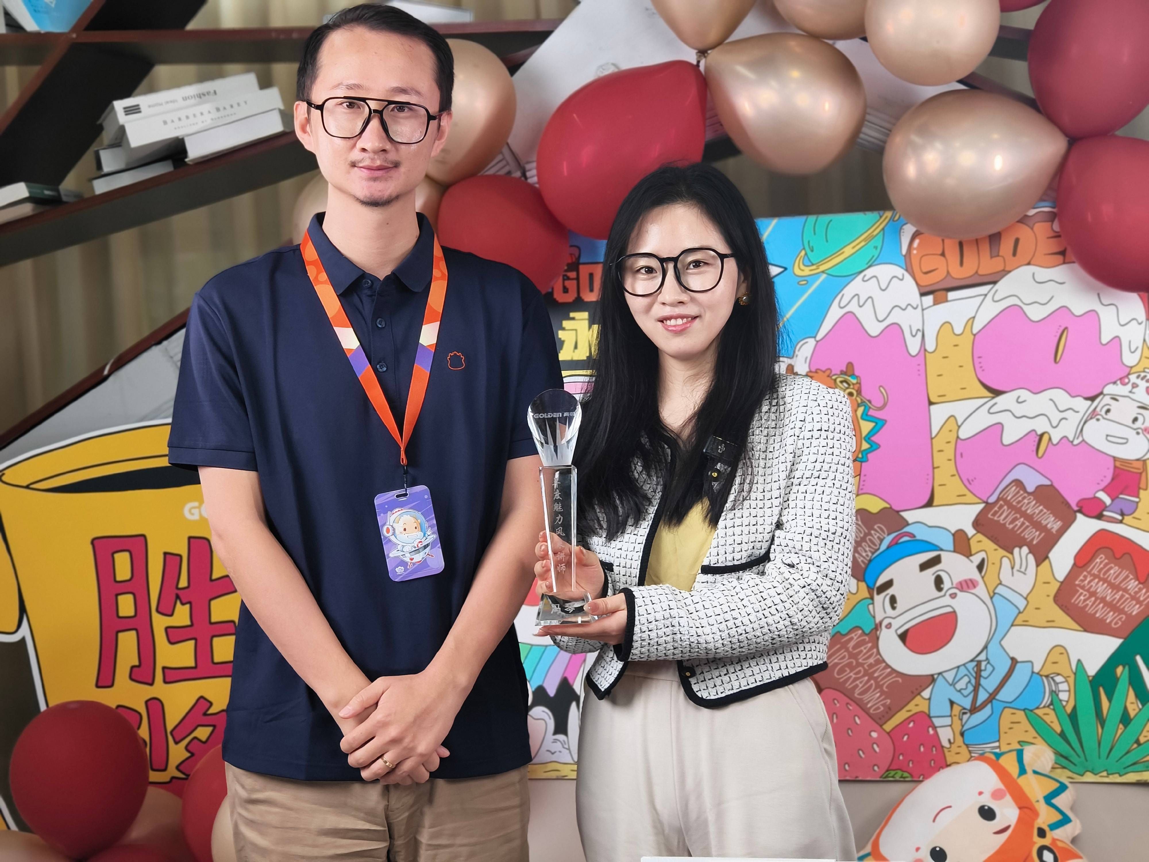 此外,徐青老师获得”年度学生最爱讲师奖”、赵群老师获得”年度学术先锋讲师奖”、凤夙老师获得“年度教育领袖讲师奖“、王秋艳老师获得”年度卓越贡献讲师奖”。