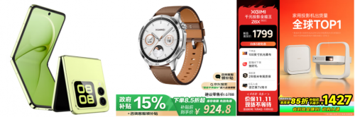 除了笔记本电脑,还有手机、手表、投影仪等3C数码好物也能在京东享受政府补贴。比如高颜值的潮人心头好——华为nova Flip小折叠,小巧机身,轻松出片,512GB机型原价5129元,领取政府补贴后立减514.9元,到手价4634.1元;原价1188元的华为WATCH GT4,支持科学运动减脂和心律失常提示,续航强劲,领取政府补贴后立减163.2元,叠加京东100元优惠券,到手价只要924.8元;平时追求极致大屏的消费者选购极米Z6X第五代投影仪也不错,颜值高、效果好,原价1799元,领取政府补贴后立减251.85元,叠加京东120元优惠券,到手只要1427.15元。