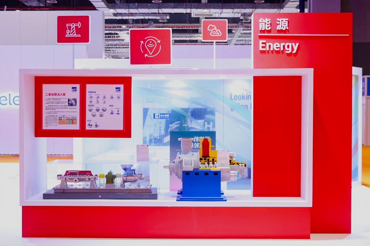 此次展示中,荏原不仅展出了其标志性的API610标准泵产品、API611/612标准汽轮机、离心式及轴流式压缩机、以及发电厂用卧式双壳体多级泵、液化天然气用超低温泵和膨胀机等核心产品,还展示了助推能源绿色转型的先进技术,包括Flex Op氢能压缩机、140TCH管道压缩机、CO2气液混合介质压缩机泵、二氧化碳注入泵等。