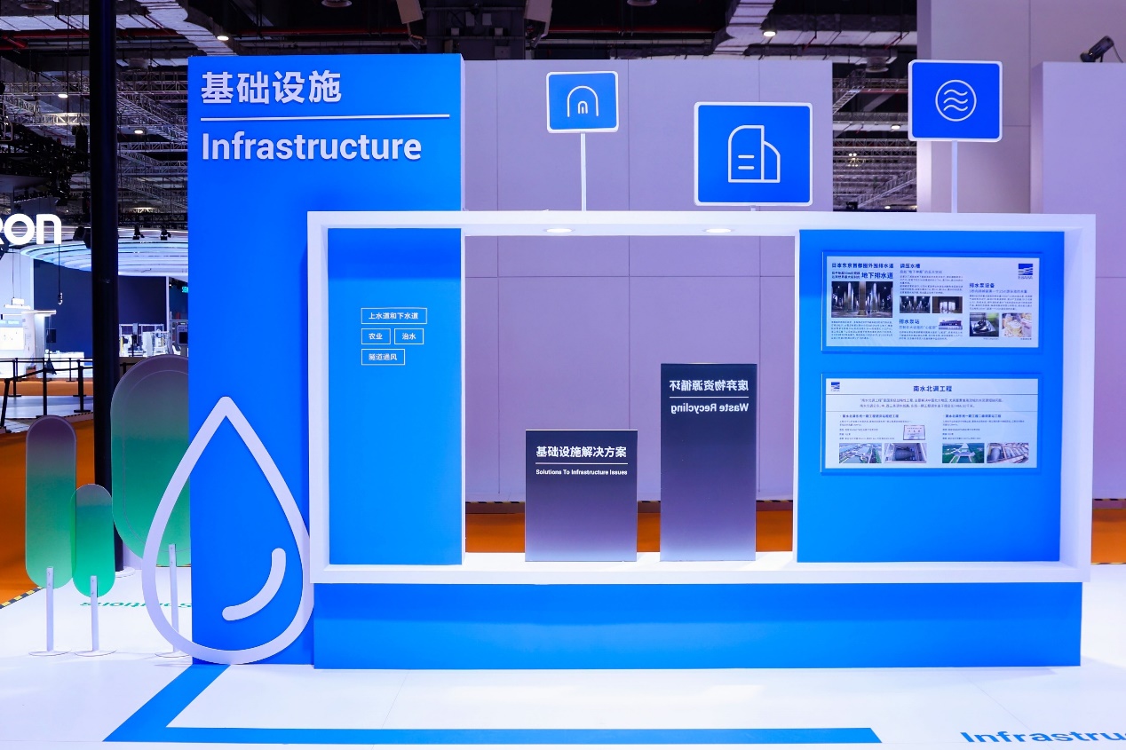 在基础设施展区,荏原展示了其在全球及中国市场的一系列成功实践案例,彰显了其在基础设施建设领域的卓越成就。其中包括位于地底50米深处、世界最大级别规模的地下排水道——“日本首都圈外围排水道”,以及中国国家级战略性工程“南水北调”项目。