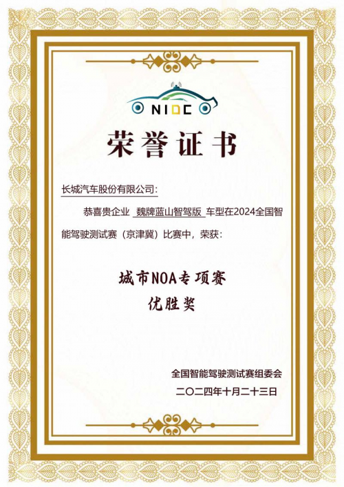 2024全国智能驾驶测试赛(京津冀)作为国内智能汽车领域的顶级赛事,不仅汇聚了智能驾驶领域的最新技术和产品,更是一次对各大汽车品牌智能驾驶能力的全方位检验。在众多参赛者中,长城汽车凭借其最新一代智能驾驶系统Coffee Pilot Ultra,助力魏牌全新蓝山在城市NOA专项赛中脱颖而出,荣获优胜奖。