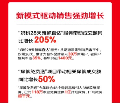 此外,京东超市推出的“尿裤尺码随心换”服务,目前已覆盖京东超市全部尿裤商品,为超3000万用户解决尺码不合适的问题,进一步为家庭育儿降成本。