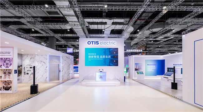 (奥的斯机电以“焕新智选”为主题的进博会展台)