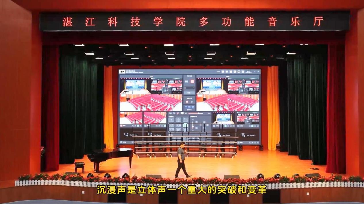 公开课上,itc声学部总监何力争首先带来了湛江科技学院音乐厅沉浸声建设的实例,采用inside沉浸声技术实现沉浸声演出与灯光自动追踪。