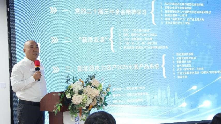 天津OTC副总经理何亮、武清开发区党委副书记赵品江、武清区工商联三级调研员安有霞相继登台致辞。他们的讲话充满了对新能源产业未来发展的殷切期望。何亮副总经理从资本市场的角度,强调了金融支持对新能源企业发展的重要作用;赵品江副书记则深入剖析了开发区在推动新能源产业集聚和创新方面的独特优势;于永胜书记从工商联的视角,阐述了民营企业在绿色低碳转型中的关键角色。三位领导的一致强调了新能源产业在推动区域经济绿色低碳转型中的核心地位,并对本次活动的成功举办表达了热烈祝贺。他们的讲话不仅为活动增添了深度和广度,也进一步坚定了与会者对新能源产业未来发展的信心与决心。