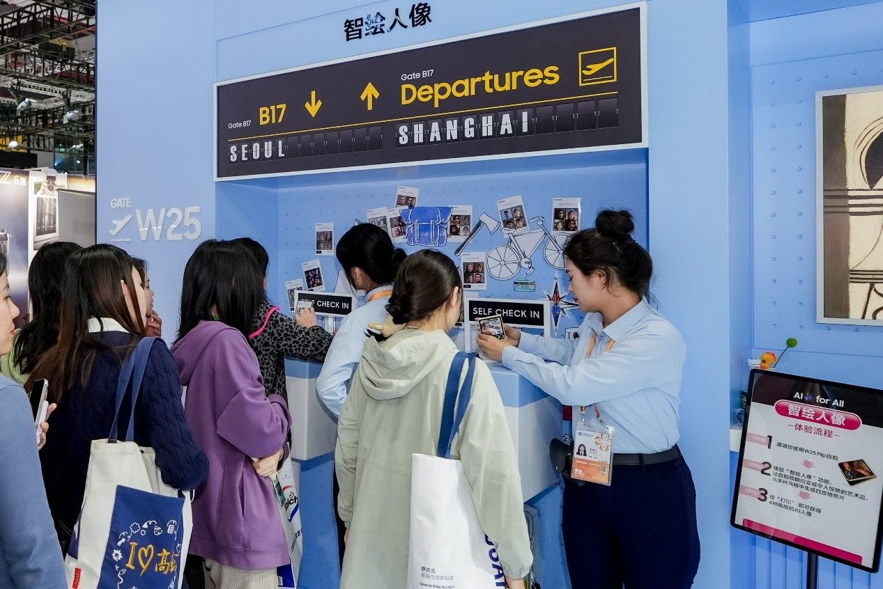 三星Galaxy AI的强大之处不止于此。在本届进博会三星展台,“AI智控掌心”互动区域成为了众多参观者争相体验的热门地点。只需拿起心系天下三星W25 Flip折叠屏手机自拍,其内置的“智绘人像”功能便能即刻将普通自拍转化为令人赞叹的艺术佳作。借助Galaxy AI的强大能力,参观者还能生成并现场打印出动漫、玄幻等多种风格的4格AI照片,记录下与三星这段邂逅的美好瞬间。