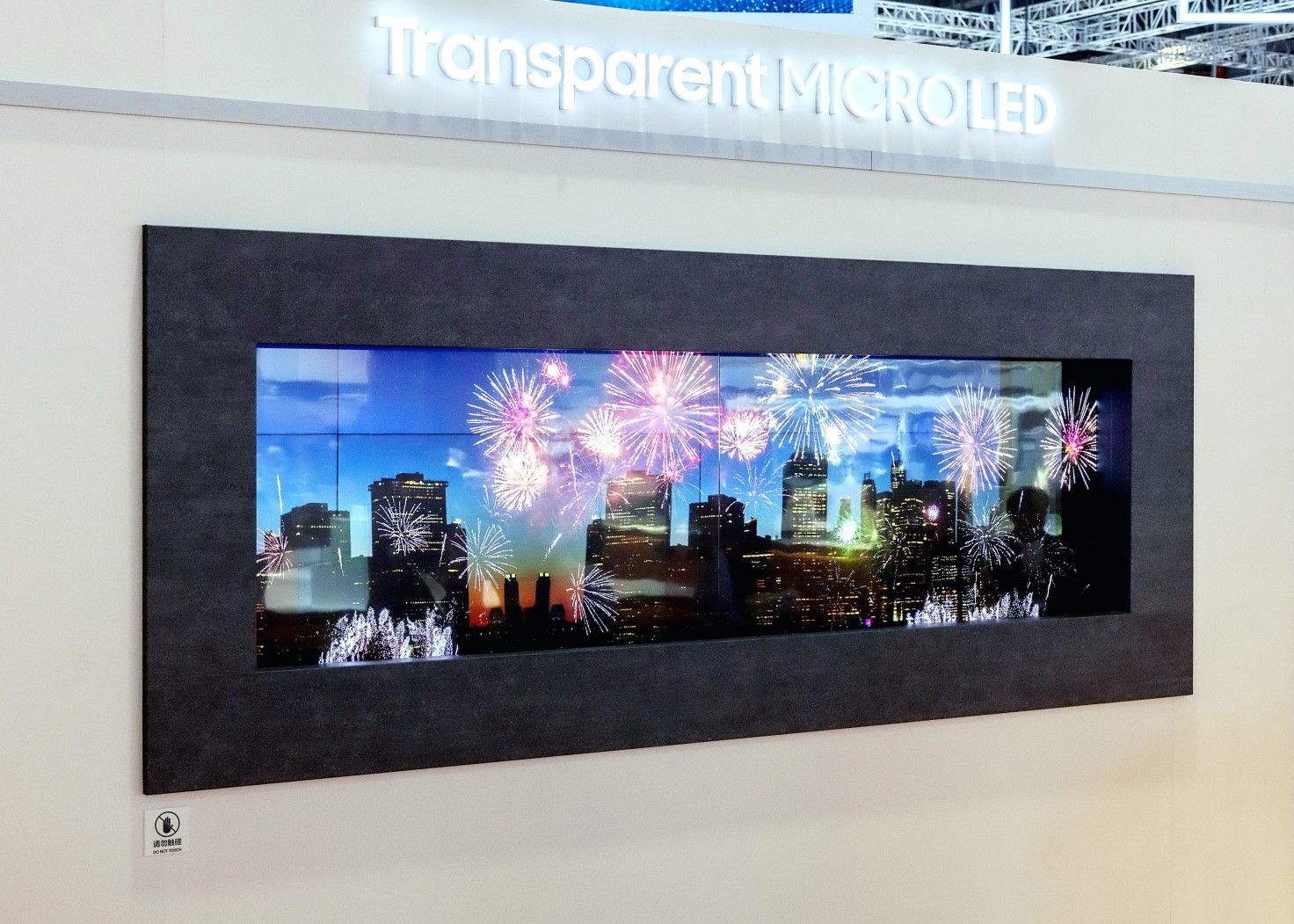 在电视领域,三星显示技术的巅峰之作108英寸透明Micro LED是全场焦点。这一透明屏的模块化特性可实现无边框无缝显示,为人们呈现清晰、流畅的视觉体验。据了解,透明Micro LED亮度是透明OLED的3倍、透明LCD的150倍 ,即使在光线充足的条件下也能确保图像生动逼真。据工作人员介绍,该款显示屏采用了先进的微型芯片技术和制造工艺,消除了接缝和光线折射,为家庭和商用环境中显示清晰、无遮挡的图像,带来传统屏幕无法比拟的超现实观看体验。例如,透明Micro LED可一边展示产品资讯,同时显示实际产品画面,或以透明画面营造为观众呈现清晰、流畅的视觉体验。