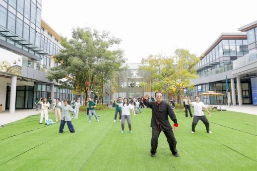 随着悠扬的古琴旋律,在专业老师带领下,游客们打起八段锦,练起太极拳,忘却尘嚣,沉浸于中华传统保健功法的韵律之中,感受身心的和谐统一,体验由内而外的彻底放松。