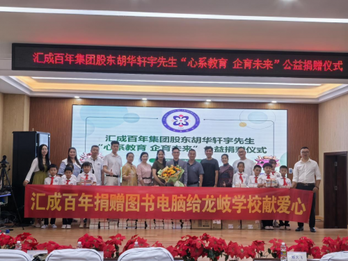 心系教育,企育未来。2024年10月9日,海口市龙岐小学举行一场公益捐赠仪式。汇成百年教育科技集团股东胡华轩宇向岐小学捐赠了一批图书及电脑设备。海口市龙岐小学党支部副书记郑大飞、副校长陈白杨以及孩子们参加了捐赠仪式。