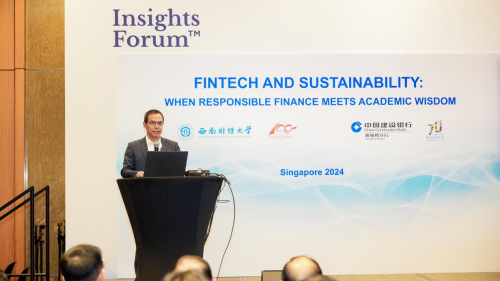 2024年11月5日,第七届国际金融科技论坛在新加坡隆重开幕,论坛由西南财经大学与中国建设银行新加坡分行联合举办,为期两天,主题为“发挥金融担当,成就绿色之路”,旨在探讨高校与金融机构如何凭借各自优势,积极履行社会责任,共同推动经济的可持续发展。