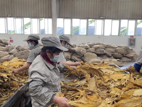 陆良复烤厂是当地有名的工厂,建厂30多年,每年解决上千人的就业,仅仓储分选车间的一个分选房就有250多名分选工人,其中80%为周边农村留守妇女,她们熟练地分拣烟叶,紧张有序地完成这一批次的分选任务。