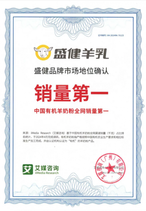 在当今消费者的心目中,羊奶粉的品质保证与品牌形象依然是决定购买意向的关键要素。值得注意的是,随着健康意识的提升,越来越多消费者倾向于做出更加审慎的选择,不惜增加预算以购得带有有机认证标志的羊奶粉,凸显了市场对高品质、纯净来源产品的强烈需求。基于此需求,盛健羊乳通过多年布局与深耕细作,进入了有机羊奶粉的市场,并在有机赛道取得了亮眼表现,荣膺“中国有机羊奶粉全网销量第一”。