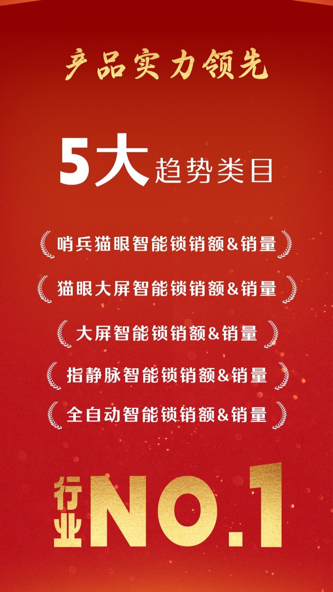 作为行业领军品牌,今年双11,德施曼在智能锁5大趋势类目中做到了绝对领先。在哨兵猫眼智能锁、猫眼大屏智能锁、大屏智能锁、指静脉智能锁、全自动智能锁5大品类中销额&销量全面领先,勇夺第一!