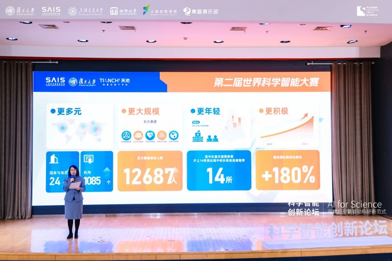 为了更好适应新时代的科研趋势,培育更多学科融合的AI人才,2023年6月,复旦大学和上智院携手发起了首届世界科学智能大赛,最终18个国家和地区的11653名选手参赛,掀起了一股科学智能的风潮。2024年7月,第二届世界科学智能大赛再次起航,吸引了来自24个国家和地区的12687名选手参赛,20多位来自上海顶尖高中的高中生首次组团参赛,赛事的多元性和影响力逐步攀升。