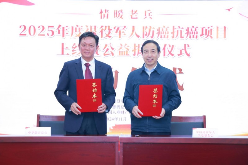 2024年11月13日,由中国退役军人关爱基金、中华慈善总会、中国人寿财产保险股份有限公司联合主办的“情暖老兵-2025年度退役军人防癌抗癌项目”上线暨公益捐赠仪式在北京成功举行。中国退役军人关爱基金会理事长包丰宇,中华慈善总会纪委书记、会长助理胡传木,中国人寿财产保险股份有限公司副总裁周海涛出席活动并致辞。中国退役军人关爱基金会秘书长张培祥主持仪式。
