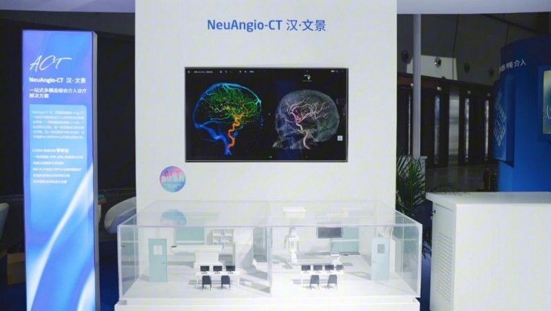 NeuAngio-CT汉·文景是目前业界唯一一款配置超高端宽体滑轨CT+DSA的介入诊疗平台,实现了CT与DSA的无缝联动。其搭载卒中、胸痛、肿瘤、创伤四大解决方案,无需转运患者,即可提供从术前规划、术中引导到术后评估的一体化救治服务,高效助力医院急诊急救中心建设和运营。