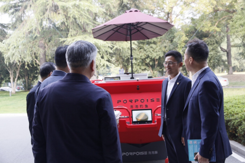 现场,无疆(武汉)技术有限公司带来的两型“泡泡豚”智能电动无人驾驶游艇成为了此次大会的一大亮点。这款游艇以其独特的造型和先进的技术吸引了众多参会嘉宾驻足参观。工信部副部长辛国斌、湖北省副省长邵新宇在聆听介绍后现场观看,对该款游艇的性能以及带来的游览体验给出了高度评价,并希望能够助力智能水上观光游览项目的发展与品质升级。