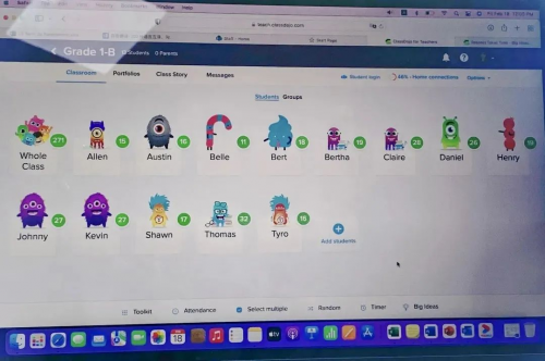 比如四年级的主班老师Davy & Shierly、Maria & Laura,会在每个月末一起把某间教室布置成「学院分商店(House Point Store)」,孩子们把当月累积的学院分兑换成「纸币」,就可以购买心仪的文具、贴纸和益智玩具。又比如二年级的J.M.老师,她日常会使用Classdojo平台辅助教学。就像游戏里可以选择角色一样,班里的每个孩子在Classdojo上都有自己的「小怪兽」头像。每攒够20个学院分,他们就能赢得解锁新怪兽、更换新头像的机会。这是小孩子们独有的乐趣,也是J.M.的管理魔法——任何时候,只要她指指Classdojo上的头像,孩子们就会立马端正姿态、回归良好表现。