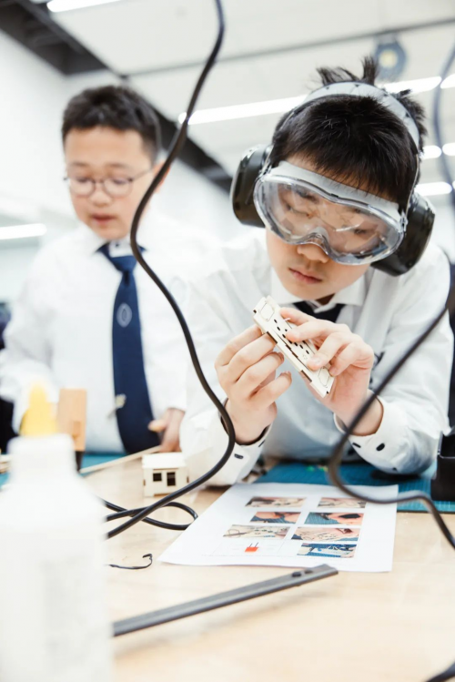 一方面,我们在教育部规定的课程基础上,还增设了不少固定课程。例如小学每周一节的戏剧课程,我们把戏剧性扮演、戏剧性游戏、剧场及剧场认知等戏剧相关的活动作为教学工具,目标是培养孩子的自信心、创造力、合作精神等一系列可迁移的技能。另一方面,同样的课程,我们学习的内容要丰富得多。例如我们的体育课上除了常规的田径项目,还会让孩子专业、系统地学习游泳、英式橄榄球、网球、地板球、板球、软式垒球、足球、篮球、羽毛球等十余种运动项目;我们的美术课上,孩子有机会尝试陶艺、版画、雕塑、服装与纺织等多媒介的艺术创作;我们的设计与技术课,和传统的劳技课相比,孩子们能接触到激光切割机、电动手钻、柱式钻机、圆盘砂光机、带锯机、3D打印机等十余种不同的机械设备和手动工具……此外,从托幼到高中,每天三点半后,我们还开设了80余种课外拓展课程(ECA)供孩子自由选择,帮助他们找到自己的天赋和兴趣所在,成就属于自己的辉煌。