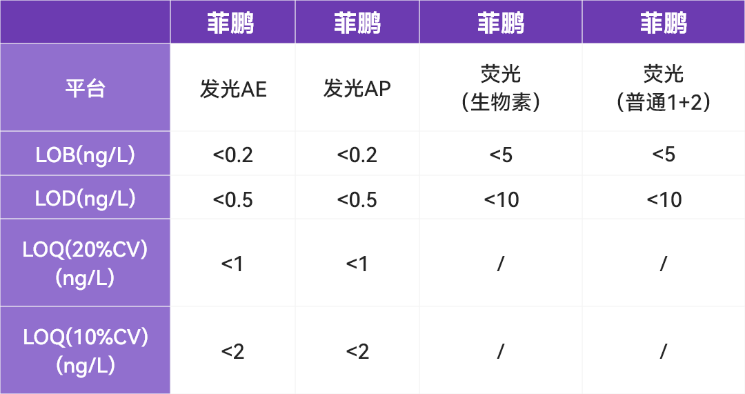菲鹏新一代hs-cTnI(高敏心肌肌钙蛋白I)产品,灵敏度实现质的飞跃,进入飞克时代,不论是从LOB/D/Q,还是从P/N比,均达到国际前列,这将有效助力客户实现测量值的精准控制,确保测量结果既能“压低”至极低水平,又能“稳定”保持在所需标准。