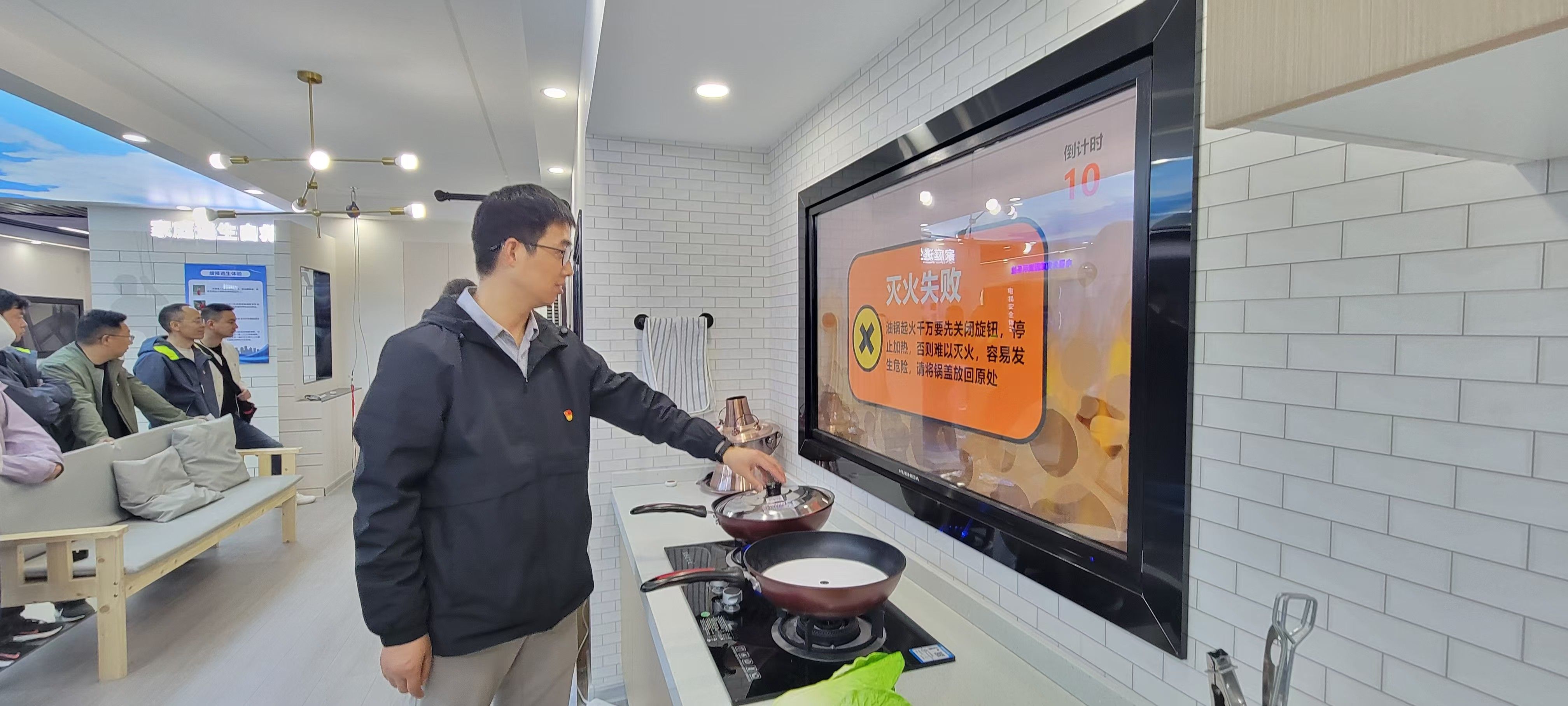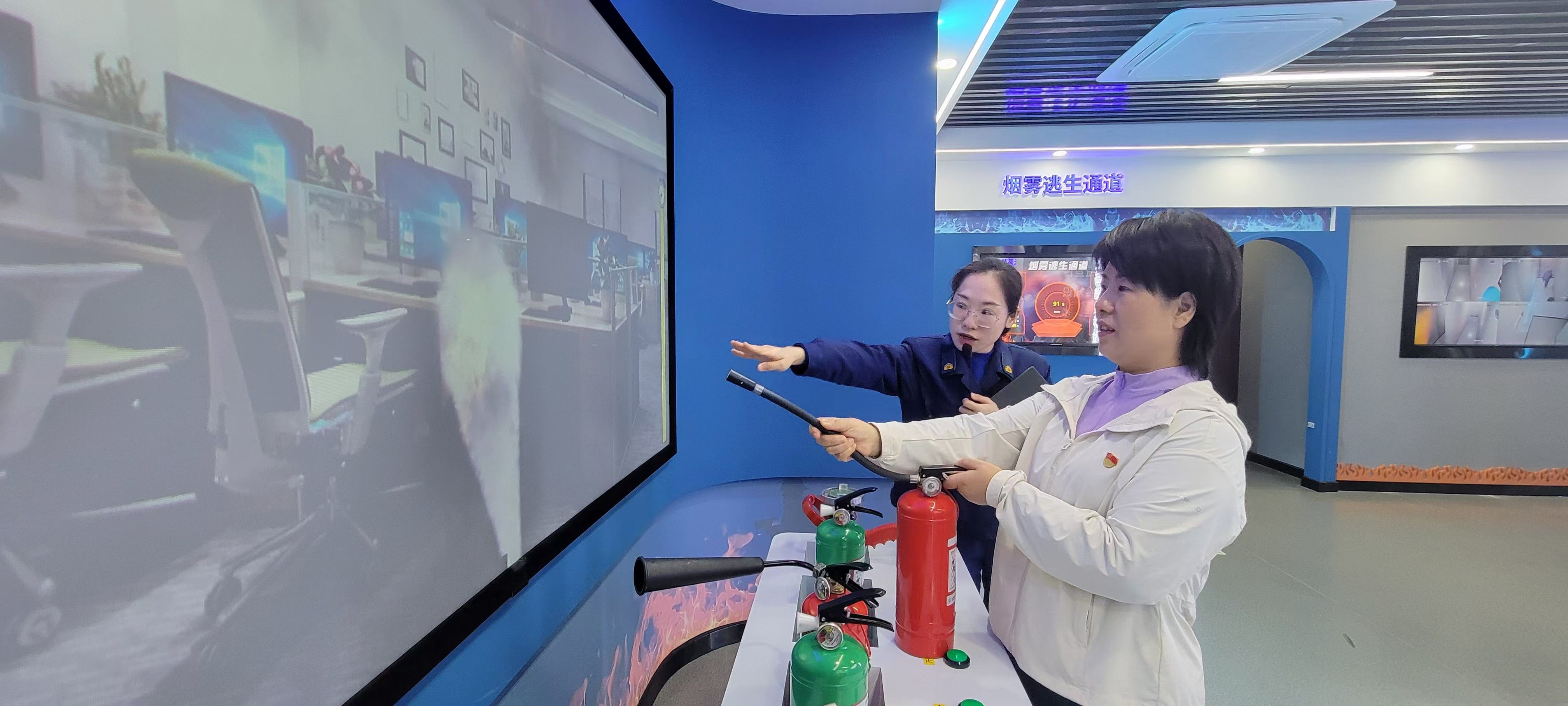 消防科普基地分为意识培养区、模拟感受区、VR体验区、技能提升区四个功能区域,馆内工作人员结合各区域展示内容,详细讲解了发生火灾时如何报警、初期火灾如何扑救、火场逃生常识和自救过程中的注意事项等知识。在各个互动区域,党员们还沉浸式体验了VR火场逃生、迷雾通道逃生、厨房油锅火灭火、家庭火灾隐患排查、企业工厂火灾隐患排查等。