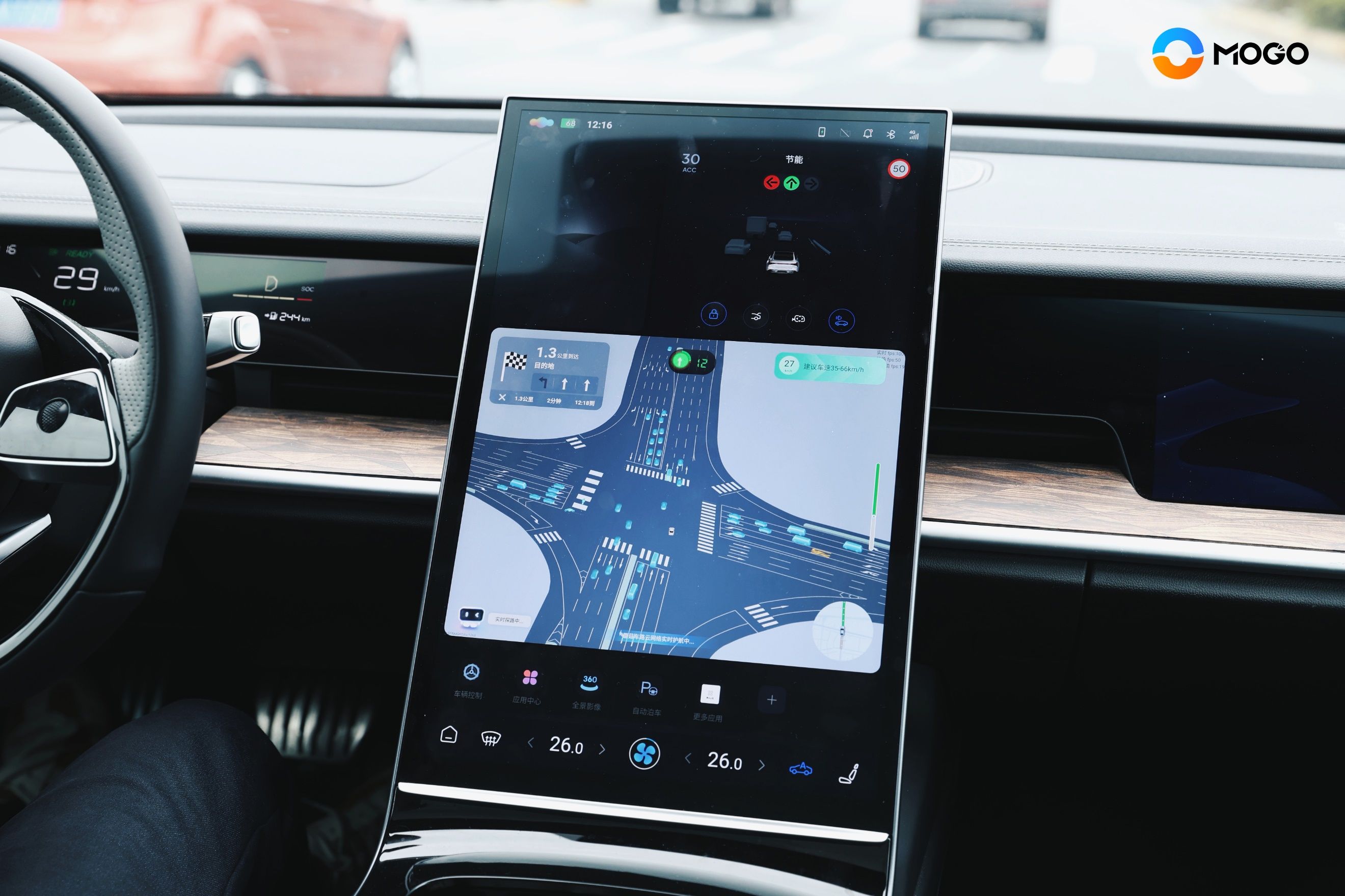 (图:车内数字孪生屏幕画面路侧数据上车应用,赋能多品牌家用智能网联汽车)