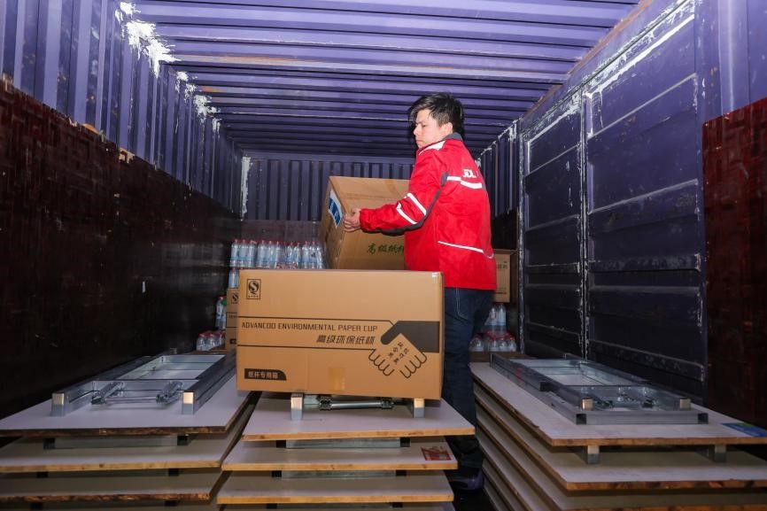不过,在此之前,这里已经悄然进行过另一场别样的“接力赛”。数十万件物资、100多辆物流车、100多名工作人员于凌晨1点陆续抵达,在一番忙碌的卸货、物资摆放及清点后,赶在清晨的第一缕阳光出来之前,他们的身影又消失在赛道尽头,为上万名跑者提供着省心、高效、精准的马拉松赛事后勤保障服务。