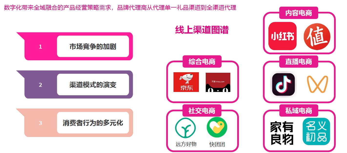 礼品消费者结构已经发生显著变化,新一代消费者习惯于电商平台采购和消费,并且依赖从数字化平台获取资讯,因此,礼品代理商不得不适应礼业这一根本性变化,在传统渠道之外全方位进入线上线下全渠道并融合营销推广。