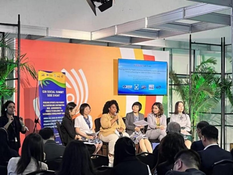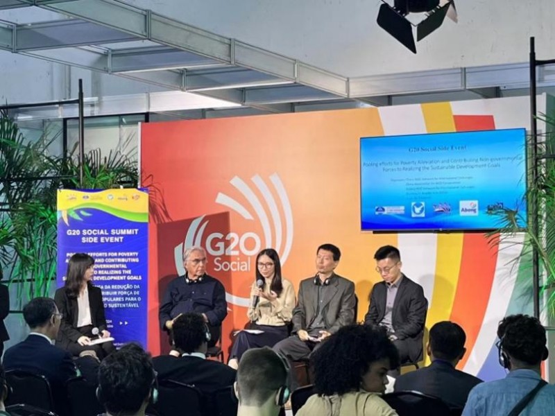 11月14-16日,G20 社会峰会(S20)在里约市中心Maua广场举行。14日,中国民促会与中促会、巴西非政府组织联合会(Abong)等5家中巴社会组织共同举办了“凝聚减贫合力,为可持续发展贡献民间力量”的S20主题边会。中促会副会长李军,巴西前司法部副部长、泛美人权委员会执行秘书阿布朗在会上致辞。全总女工部、巴西非政府组织联合会、京促会、巴西公民行动、加油里约等9家中巴社会组织的参会代表进行深入对话,共同探讨减贫与抗击饥饿的全球南方国家面临的挑战,以及实现粮食安全的重要性。中国民促会项目经理舒辰在会上分享了中国民促会在减贫方面的成功经验。
