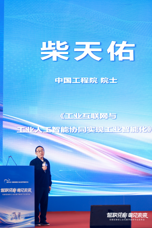 会上,中国工程院院士柴天佑进行《工业互联网与工业人工智能协同实现工业智能化》的主题分享;花都区科技工业和信息化局党组成员、区生产力促进中心主任吴明昊进行平台发布,全方位讲解平台创新优势。