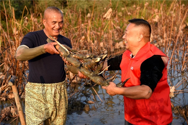 老向第一次参与挖藕,他笑着说:“第一次挖藕,感觉挺有意思的,但也确实不容易。看到这些新鲜的莲藕,心里感到特别满足。”