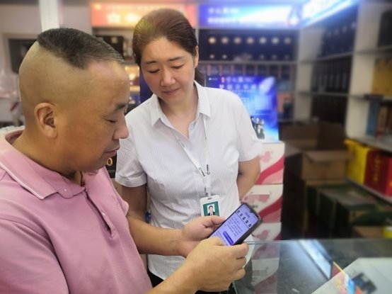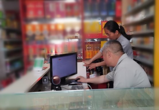 (图为:客户经理为零售客户安装知音通店铺管理系统)