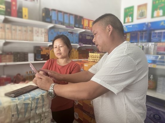 (图为:营销人员到零售客户店铺进行微客服平台使用情况调研回访)