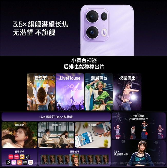 其中OPPO Reno13 Pro特别配备全新3.5倍超级长焦镜头,新增小舞台摄影模式,结合长焦系统中的全新AI模型,确保在夜景和演唱会等复杂光线环境下依然保持出色表现。该系列同样支持OPPO AI影像算法,包括AI超清像素、AI去拖影、AI去反光等功能。