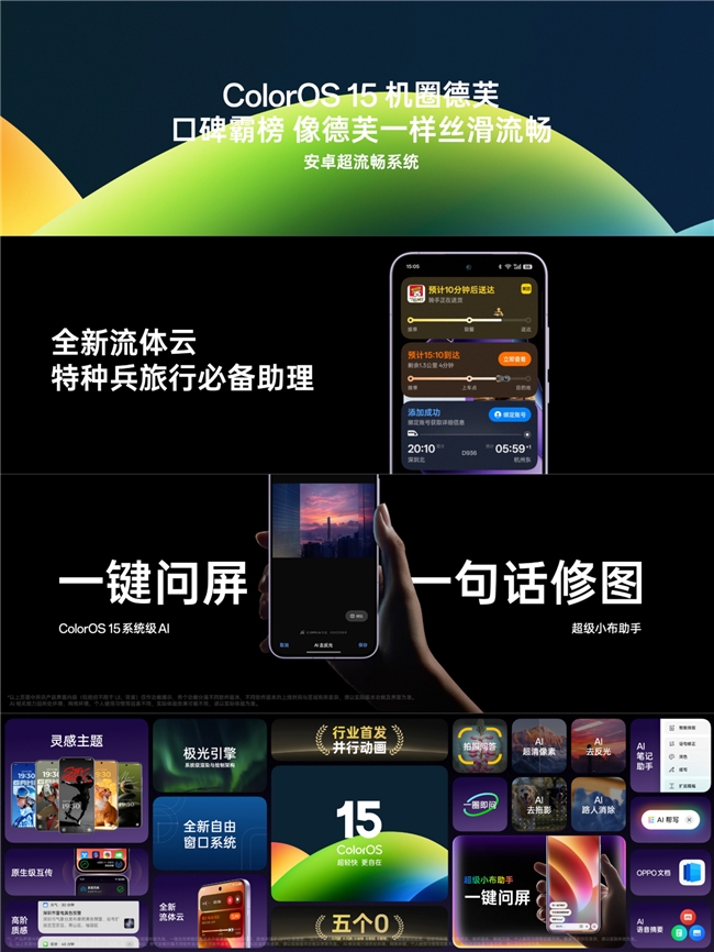 系统集成多项AI功能,包括智慧文档和智慧便签,提升办公效率。AI识图帮写功能支持10余个社交和电商平台,提供5种文案风格。整合超级小布助手,通过"一键问屏"功能满足各类识别需求。