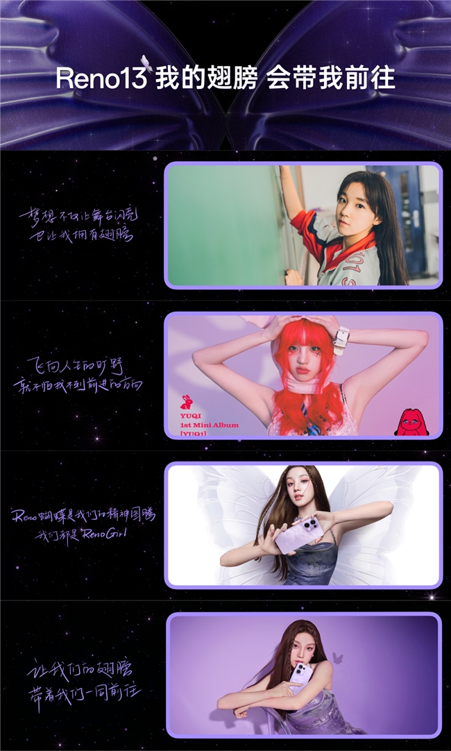 OPPO Reno13系列在外观设计方面再次实现突破,从蝶翼汲取灵感,精心打造蝶蝶紫潮流配色。设计团队将蝶翼流光元素巧妙融入"超美小直屏",开创下一代潮流美学新篇章。这一设计不仅体现了外在美的追求,更深刻诠释了OPPO Reno系列的内在精神。品牌携手代言人宋雨琦,完美演绎"我的翅膀,会带我前往"的品牌理念,展现Reno Girl不被定义的独特生命力。