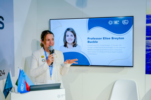 Elise 教授还探讨了技术创新与人文关怀相结合的重要性,指出仅依赖技术解决方案无法解决气候问题,必须同时注重社会价值观的重塑以及人与自然之间的和谐关系。她通过实例说明,女性在气候领导力中所展现的同理心和协作能力如何促进了谈判的成功,并提出性别平等在推动社区韧性建设和气候资金有效利用中的重要作用。此外,她还特别提到青年在气候行动中的潜力,鼓励全球社会为青年提供更多发声机会和赋权平台。她以充满激情的呼吁结束演讲:“我们是一个人类大家庭,必须放下分歧,共同努力,为地球创造一个更加公平和可持续的未来。”