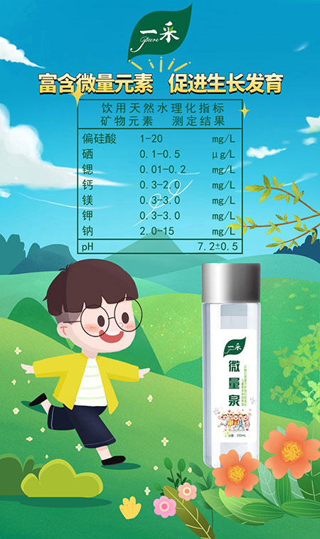 “一采微量泉”来自于广东梅州偏远山区,原生态的自然环境、独有的自然禀赋,使其水资源富含偏硅酸、镁、锶、钙、锌等多种微量元素。这些微量元素为儿童提供天然的营养补充。如:钙促进骨骼生长,偏硅酸有助于血管健康,锌有“生命之花”美誉,不仅能提升食欲,还能促进营养的充分吸收,在促进儿童骨骼细胞生长、身高增长方面也有极大促进作用。