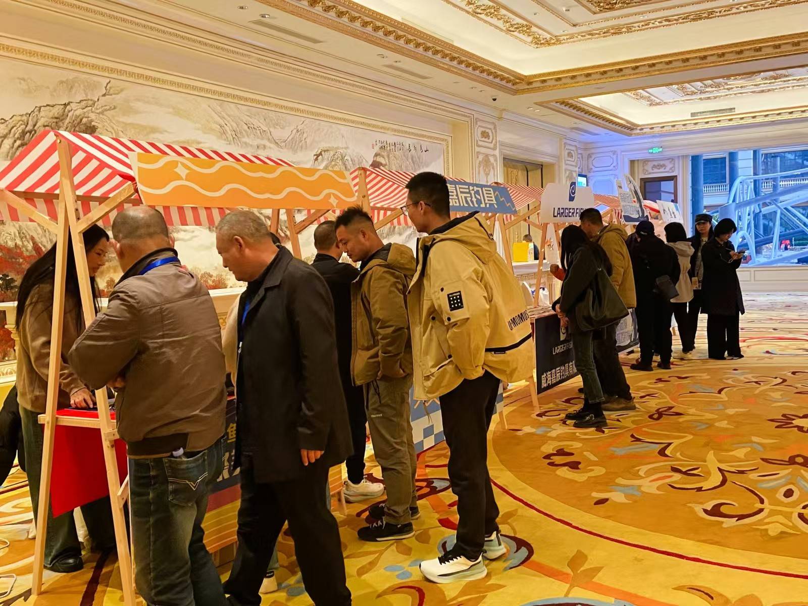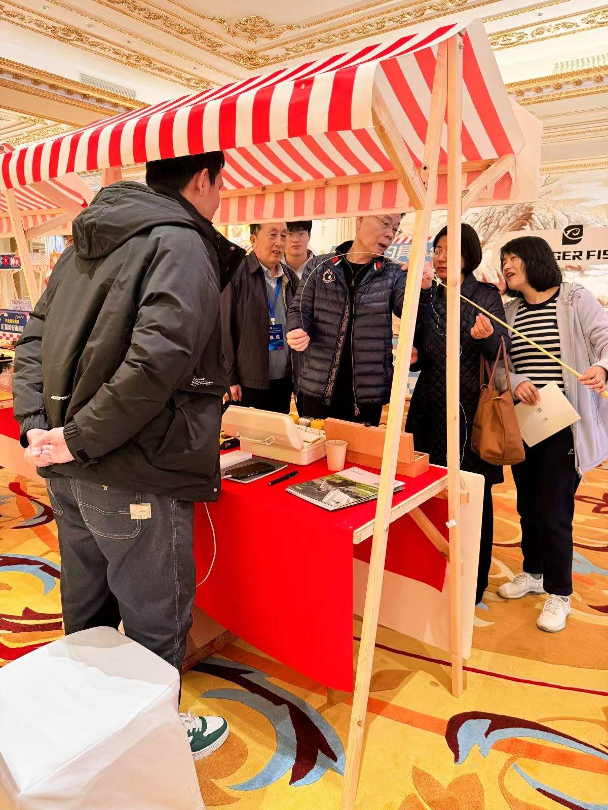开幕式的同时,酒店一楼大堂举办了钓鱼运动市集,众多钓鱼相关企业集结在此,展销的产品涵盖了高端钓鱼装备、文创产品、钓鱼用品等多个领域,共同构成展示了丰富多彩的钓鱼产业全景图。