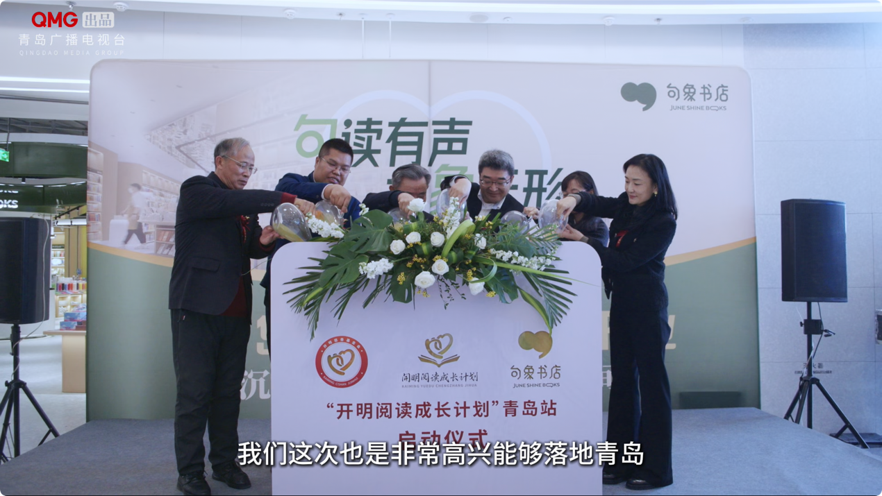 本次活动现场,青岛市政协原主席胡延森,青岛大学文学与新闻传播学院副院长张文彦,民进青岛市委会秘书长刘志勇,开明慈善基金会秘书长武俊涛与开明慈善基金会副理事长、学大教育集团创始人、董事长兼CEO金鑫及学大教育集团文化阅读事业部总经理陈励共同启动“开明阅读成长计划”的青岛站工作。