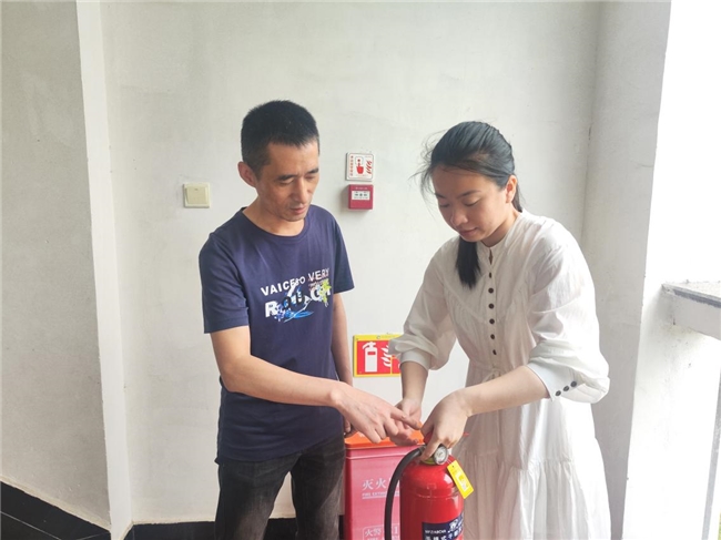 专职安全员在指导新员工使用消防器材 谢可供图