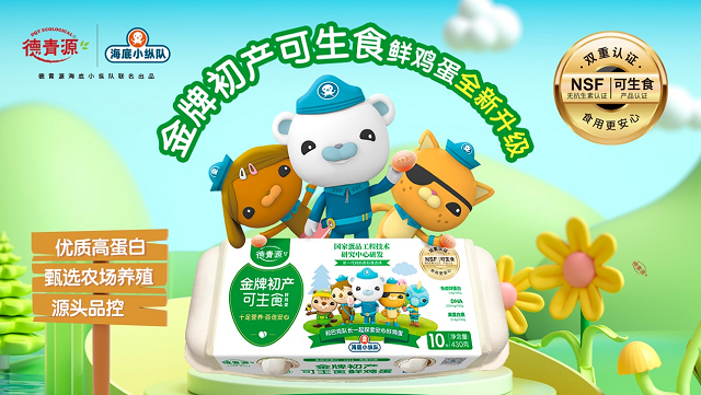 德青源深耕蛋品行业多年,以始终如一的品质和创新为核心,为千千万万家庭提供健康安心的蛋品选择。此次全新推出的“金牌初产可生食鸡蛋”IP联名版,特别为关爱孩子的健康成长而设计,承载着德青源对下一代的满满心意,助力孩子的快乐成长,用专业和爱心陪伴每一位家长的选择。