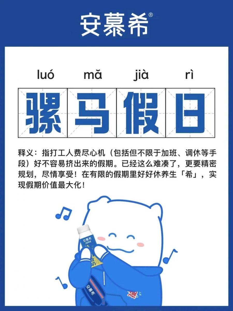 从肯德基的“疯狂星期四”,到“来一瓶82年的雪碧”,再到小红书和安慕希共创“骡马假日修养生希”,不难发现,“玩梗式”创意被更多用在品牌营销中。效果也是显而易见的:不仅能够实现话题集结,带来流量暴涨,而且这样的软性沟通方式也更能引发年轻人共鸣,实现话题共振。