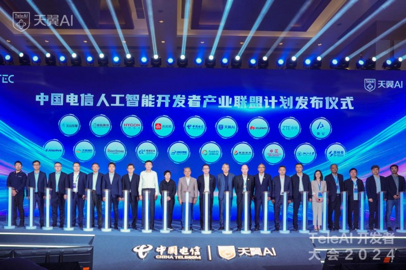 大会期间,TeleAI 还宣布与华为、中兴、亚信科技等在内的19家合作伙伴发布中国电信人工智能开发者产业联盟计划,旨在聚合各方力量,加快推动人工智能产业发展,提升技术能力与应用水平,并为全球开发者赋能。