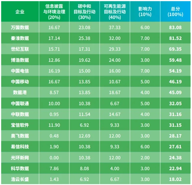 绿色云端2024-企业排名表总览(数据中心)