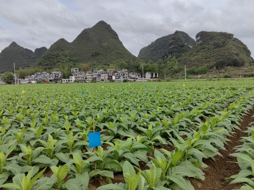 图为使用黄板、蓝板防治的烟田 覃怡婧/摄