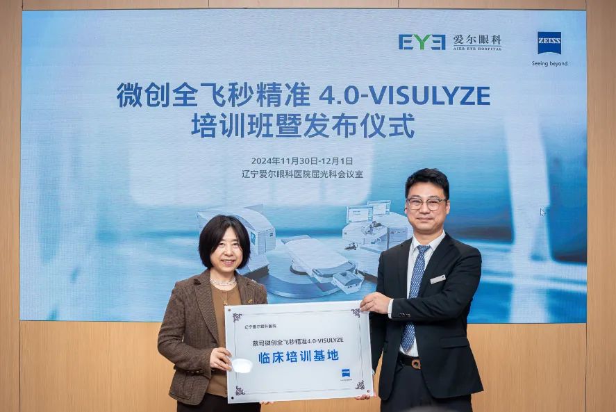 活动现场,蔡司公司授予辽宁爱尔眼科医院“微创全飞秒精准4.0-VISULYZE临床培训基地”牌匾,标志着辽宁爱尔眼科医院在屈光手术进入“精准智能、量眼定制”新时代的同时,也肩负起微创全飞秒精准4.0-VISULYZE理论及实践培训的重任,助力医生精准执行微创全飞秒手术,提升治疗效果的准确性和一致性,让患者获得更佳的视觉体验和治疗效果。