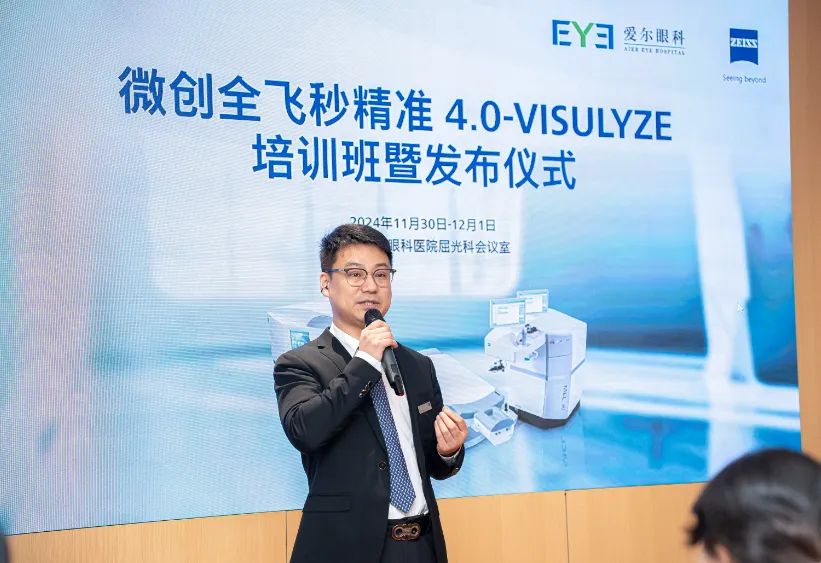 随着微创全飞秒精准4.0-VISULYZE系统的逐步推广和应用,2024年11月30日-12月1日,辽宁爱尔开启了一场科技与视力矫正完美融合的盛宴——微创全飞秒精准4.0-VISULYZE培训班暨发布仪式。爱尔眼科医院集团屈光手术学组副组长、爱尔眼科辽宁省区副总院长方学军,吉林大学中日联谊医院王淑荣教授,爱尔眼科山西省区副总院长陈鹏,蔡司辽宁省区销售经理冷松,蔡司屈光临床应用专员徐力兴,以及来自辽沈地区屈光手术专科的医生近40人参与了此次培训班。